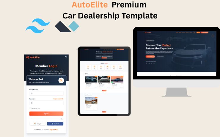 AutoElite is a sophisticated, feature-rich car dealership website template built with the latest Tailwind CSS v4 and Alpine.js, specifically designed for luxury automotive dealerships, car showrooms, and vehicle marketplaces.